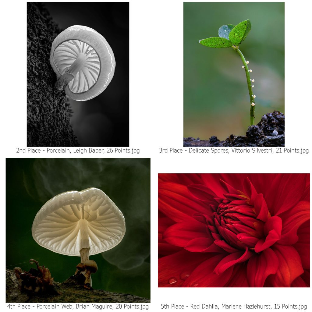 1st Place – Mycena with Droplets, Vittorio Silvestri, 43 Points