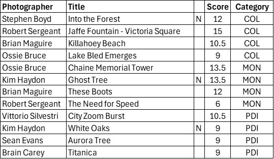 On Tuesday 27th January, we had the forth round of the NIPA Inter-Club Competition judged at the club, by Enniskillen CC member, Anita Kirkpatrick.